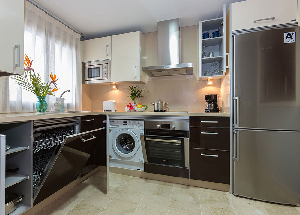 Vous serez enchanté par ces appartements pouvant accueillir jusqu'à 4 personnes, comprenant deux chambres et deux salles de bains. La cuisine entièrement équipée avec lave-vaisselle vous permettra de préparer de délicieux repas. Pour votre commodité, chaque appartement est équipé de chauffage et de climatisation, ainsi que d'une machine à laver, vous offrant ainsi tout le confort de la maison.